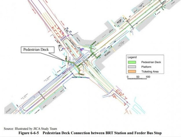 This 2012 illustration showing a possible intersection design for the Green line was rendered by the Japanese International Cooperation Agency which prepared the Karachi mass transit plan after extensive surveys. Source: JICA