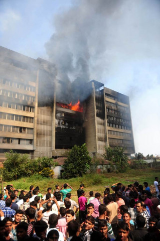 File photo of a fire in a garment factory in Bangladesh. PHOTO: AFP