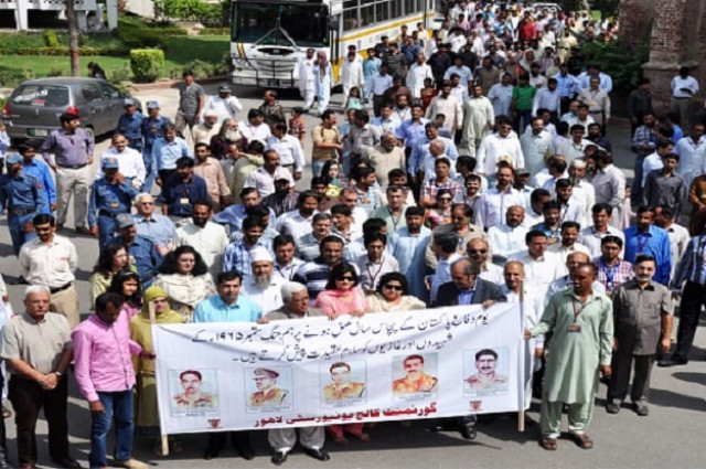 Earlier, at a ceremony in Bokahri Auditorium, the faculty and staff observed a one-minute silence in memory of the war martyrs. Hamza Shahbaz, Osama Babar, Zubair Ali, Qasim Ali, Aqib Javed, Ali Haider, Sajjad Ali, Ammant Ali and Taimoor Azmat from the GCU Nazir Ahmed Music Society presented national songs.