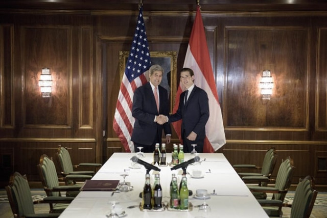 John Kerry (L) and Sebastian Kurz