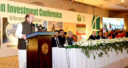 Prime Minister Nawaz Sharif addressing Pakistan Investment Conference in Islamabad on November 4, 2015. PHOTO: PID