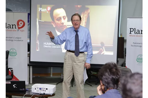 Mr. Ken Morse, Chairman & CEO, Entrepreneurship Ventures Inc. talking to entrepreneurs at Plan 9. PHOTO: fb.com/technologyreview.pk